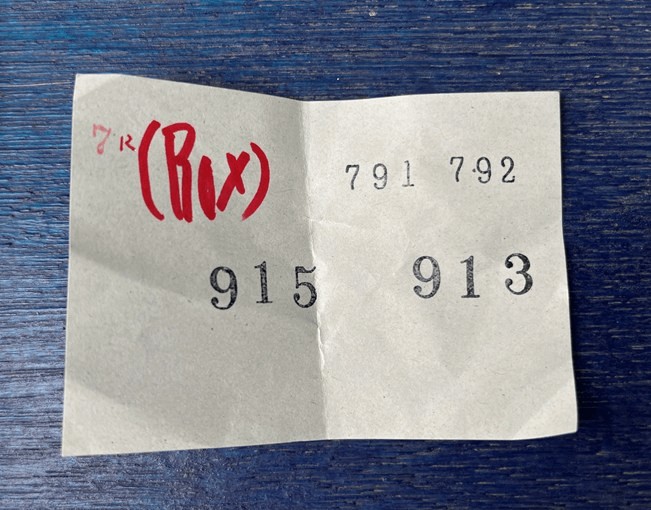 予想屋さんのテーブルに100円玉を置き、買い目が書かれた紙を受け取ります。そっと開けてみると買い目が書かれてます…